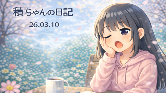 積みちゃんの日記 積ちゃんの日記 26.03.09 2026年3月9日 sinosino365 こんにちは、積みちゃんです。 今日は、気分がゆっくり動いた日でした。 正直、昨日より少しだけ前、と思いました。 でも、ペースは変えなかったので、今日はそれでよし …