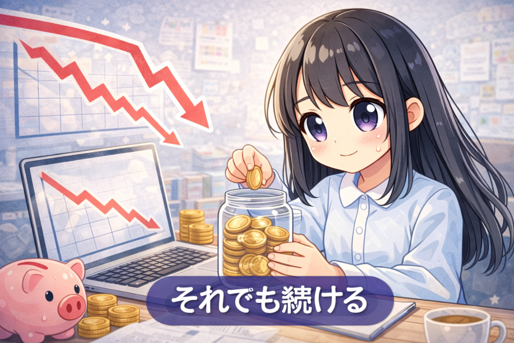 👉 暴落しても、積立をやめません。