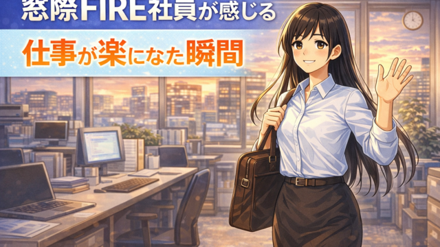 窓際FIRE 窓際FIRE社員が感じる「仕事が楽になった瞬間」 2026年2月15日 sinosino365 残業をしなくなった理由 窓際FIREしている中で、必ずやらないのが残業です。そもそも就業時間内に仕事を終わらせることが普通な …