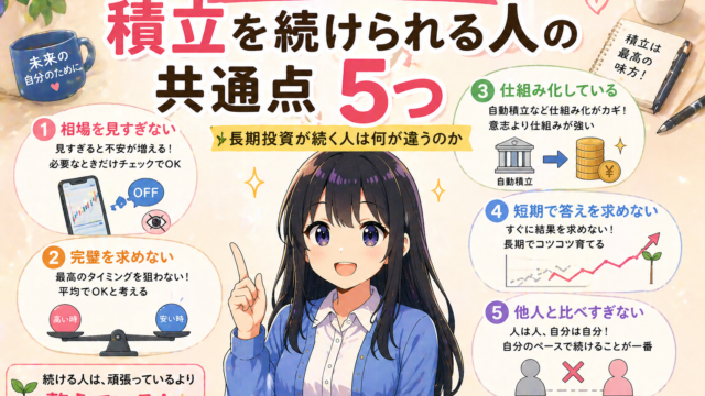 資産形成 積立を続けられる人の共通点 2026年4月30日 sinosino365 こんにちは、積ちゃんです。 積立投資って、 👉 始めるより続けるほうが難しい と思っています。 上がる時はいい。 でも、 下がる増えな …