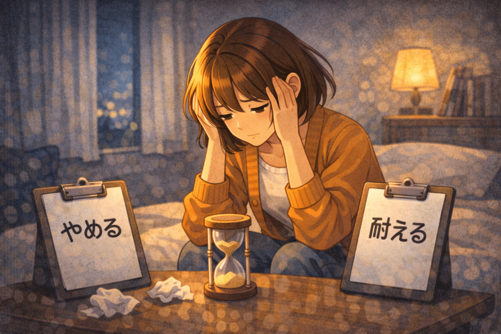 - このまま耐えるか、全部投げ出すか