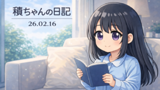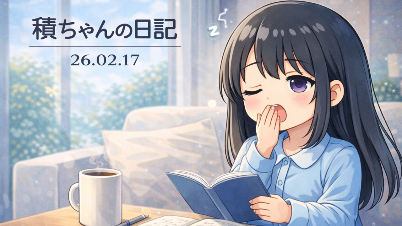 積みちゃんの日記 積ちゃんの日記 26.02.17 sinosino365 2026年2月17日 / 2026年2月17日 こんにちは、積みちゃんです。 今日は、少し眠たい一日でした。 正直、集中できてないな、と思いました。 でも、最低限は守れたので、今日はそれでよし。 積みちゃんのひとこと:「完璧じゃなくていい。」 また明日。 日記