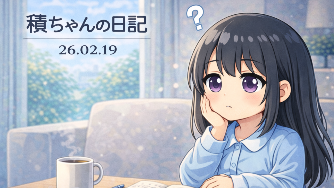 積みちゃんの日記 積ちゃんの日記 26.02.19 sinosino365 2026年2月19日 / 2026年2月19日 こんにちは、積みちゃんです。 今日は、あまり記憶に残らない日でした。 正直、何してたっけ、と思いました。 でも、無事に終わったので、今日はそれでよし。 積みちゃんのひとこと:「覚えてない日も、前進。」 また明日。 日記