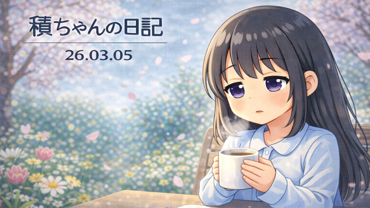 積みちゃんの日記 積ちゃんの日記 26.03.05 sinosino365 2026年3月5日 / 2026年3月5日 こんにちは、積みちゃんです。 今日は、あまり調子が出ない日でした。 正直、今日は外れの日かも、と思いました。 でも、淡々と過ごせたので、今日はそれでよし。 積みちゃんのひとこと:「外れでも、進んでる。」 また明日。 日記