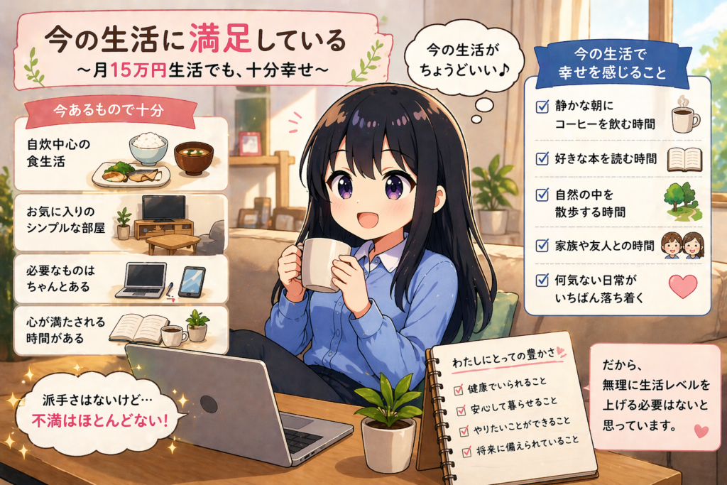 月15万円生活でも満足している