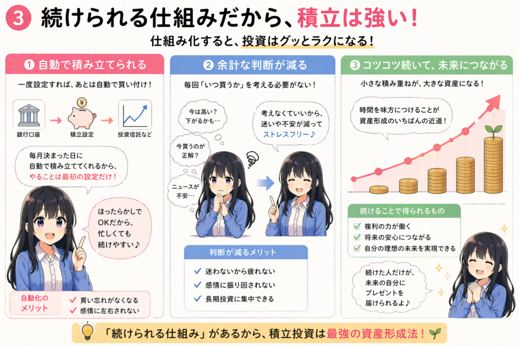 👉 積立は、自分には続けやすい投資法。